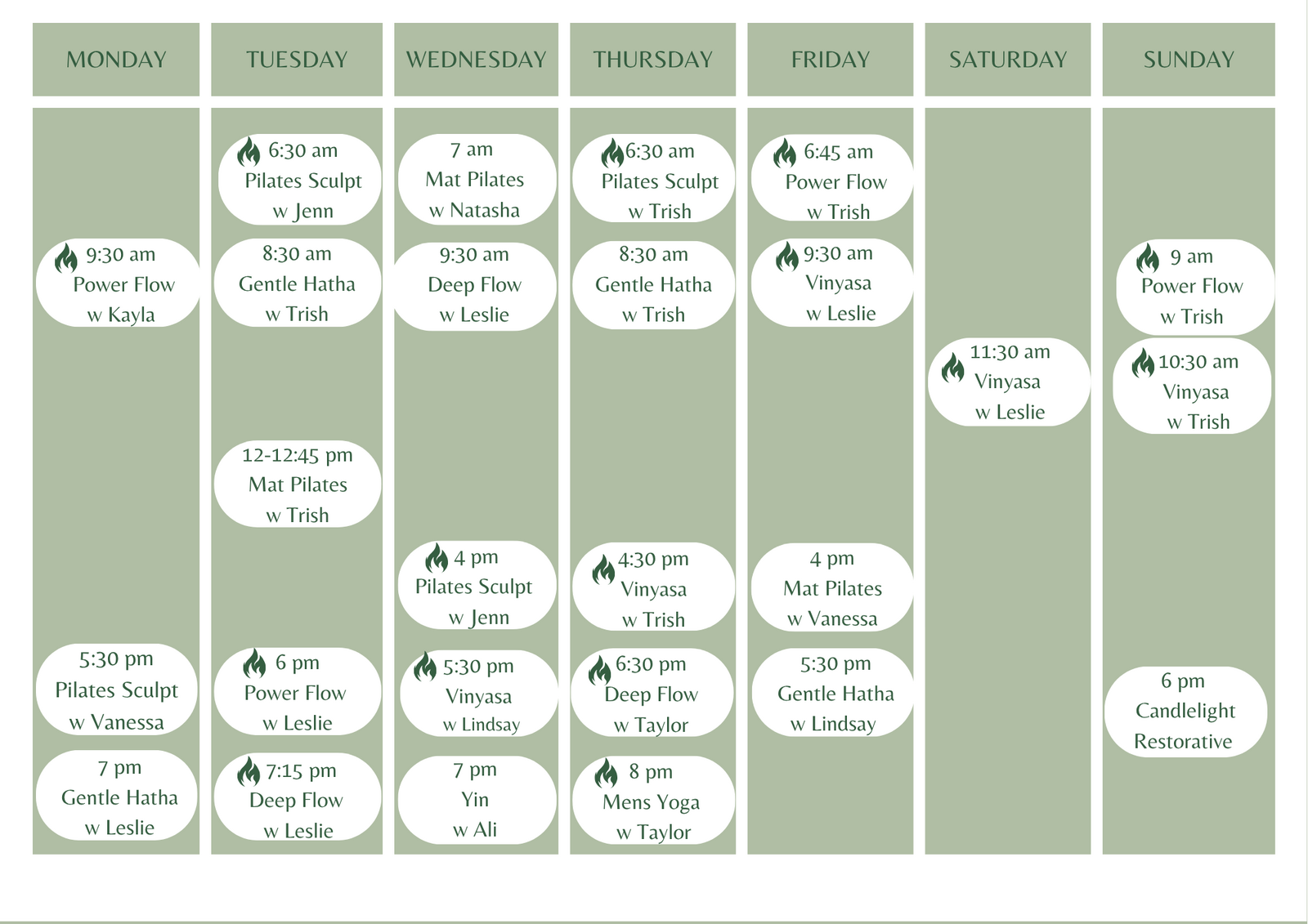 Our studio is warmed with infrared heaters. Each class has a different temperature;